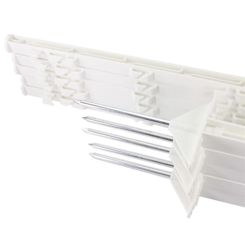 Die Weidezaunpfähle »Dreieckstritt« 10x, Kunststoffpfahl sind weiß und 75cm lang (5 Band- und 2 Seil-Ösen). Durch die Länge von 0,75m eignen sich diese Doppeltritt Wildabwehrpfähle exzellent zur Abwehr von Wild wie Dachse, Otter, Füchse, Kitze, Hasen, Marder und andere Wildtiere. Der Wildabwehr Kunststoffpfahl mit Dreieckdoppeltritt ermöglicht festen und sicheren Stand auch auf unebenen Böden.