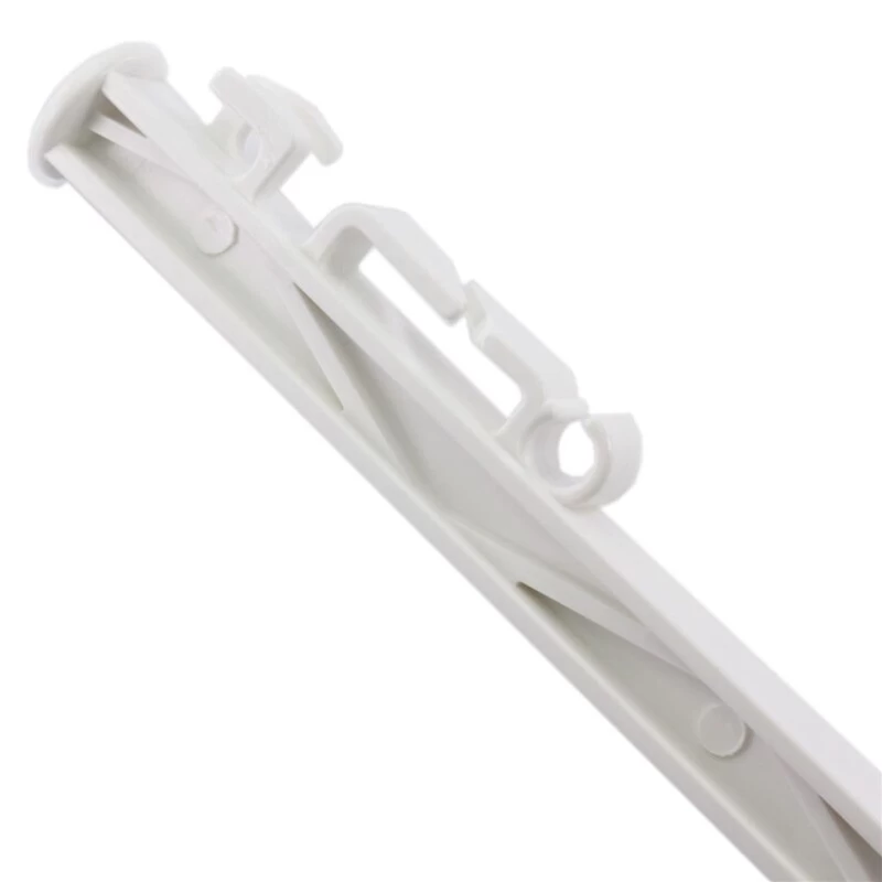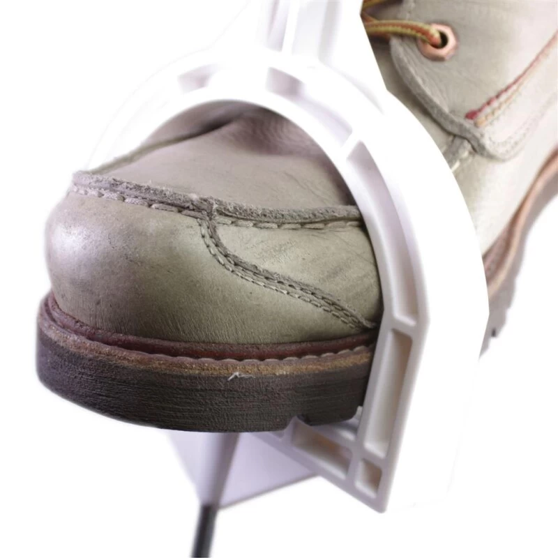 Die beiden Trittstege links und rechts über dem Stahlnagel verteilen die auf den Weidezaunpfahl wirkenden Kräfte in weichen und harten Böden. Die Steigbügelpfähle sind aus glasfaserverstärktem Polypropylene (PP) und dadurch besonders belastbar und bruchsicher. UV-Stabilisierende Additive in der Kunstsstoffmischung schützen die Weidezaunpfähle davor durch Lichteinwirkung spröde oder brüchig zu werden. Die insgesamt 16 Ösen entlang der Weidezaunpfähle mit Steigbügeltritt verteilen sich auf 4 schmale Weidezaunband-Ösen unten, 4 breitere Weidezaunband-Ösen und 8 Ösen für Weidezaunseil jeweils oben am Weidezaunpfahl. Weiße Steigbügelpfähle sind zudem gut sichtbar für die Tiere und sorgen damit für Hütesicherheit.