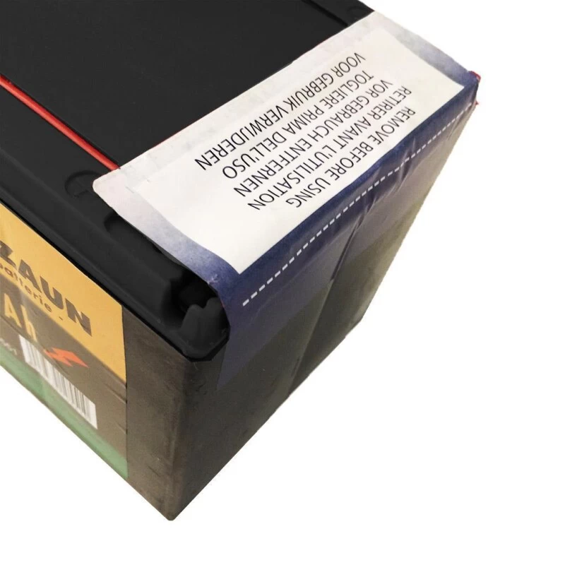 Der Aufkleber auf den 9 Volt Batterien, der die Belüftungslöcher abgedeckt, sollte vor dem Anschluss entfernt werden. Entfernen Si den Aufkleber aber nicht gänzlich von Ihrer Weidezaunbatterie, da beim Einlagern im Winter der Aufkleber wieder die Löcher verschließen sollte um eine vorzeitige Entladung der 9 Volt Trockenbatterie zu unterbinden.