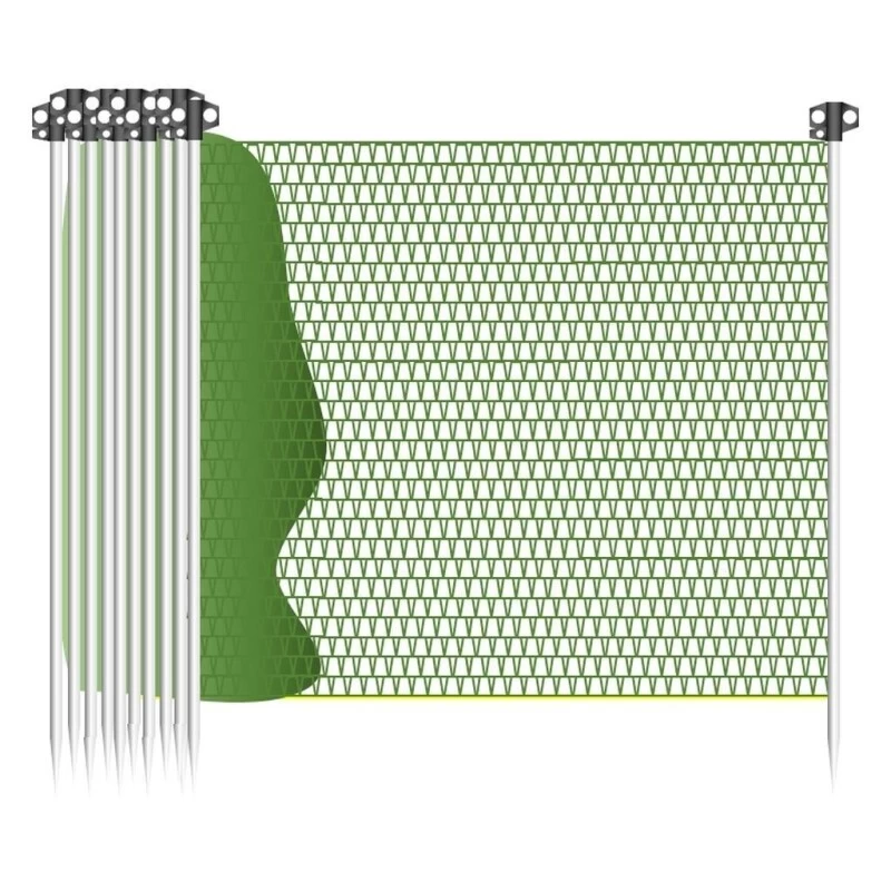 - 20m lang und mit 12 in das Gewirke eingewebten Fiberglaspfählen alle 180cm