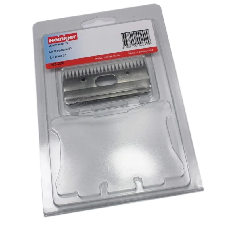 Heiniger 703-220 Obermesser 23 Zähne. Für die professionelle Schur hergestellte Heiniger Schermesser. Gefertigte Schermesser aus Spezialstahl für lange Haltbarkeit. Nachschleifen ist mit den Schermessern mehrmals möglich.