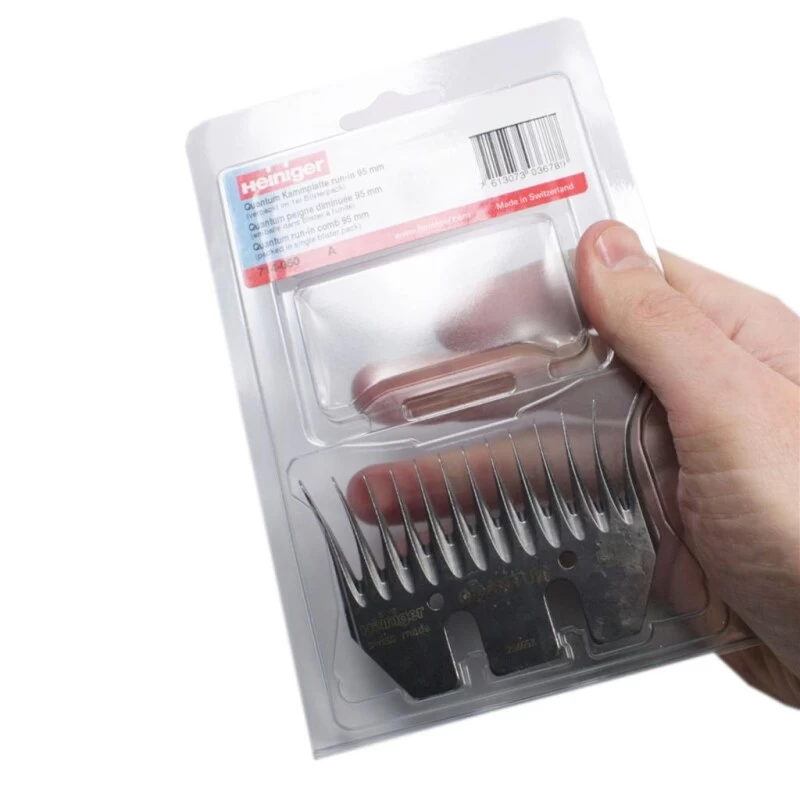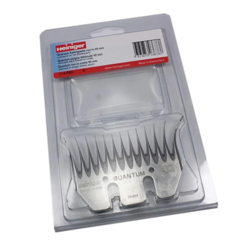 Heiniger Quantum 714-050 Schermesser run-in 95mm. Für PROFI Scherer produzierte Heiniger Schermesser. Scherkamm für Schafe mit offener Wolle. Breiter Kamm für Mischwolle, fliesst perfekt durch offene Wolle. Die aus Spezialstahl gefertigten Schermesser haben eine lange Haltbarkeit. Nachschliff ist mit diesen Schermessern deshalb mehrmals möglich.