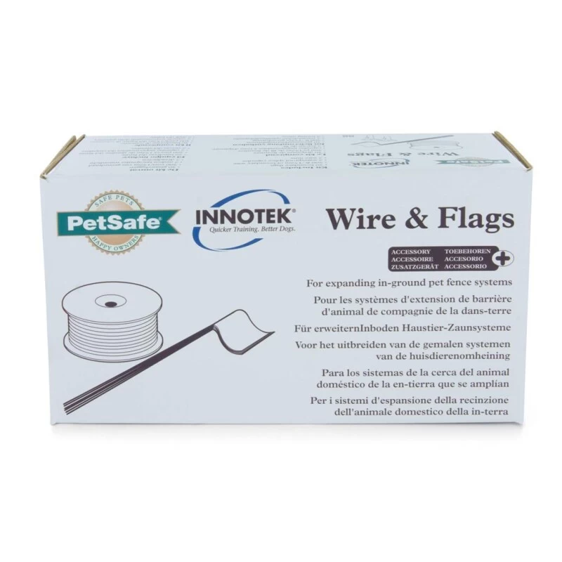 Das Erweiterungsset »Kit« PetSafe Hundezaun & Katzenzaun hat eine Länge von 150m. Zwecks Ausweitung des Haustierzauns ist dies das passende Draht- und Flaggen-Kit. Inkl. 150m Draht, 50 Grenzflaggen und 2 Leitungsverbindern. Mit allen Bodenzaunsystemen von PetSafe® (damit auch Innotek) kompatibel.
