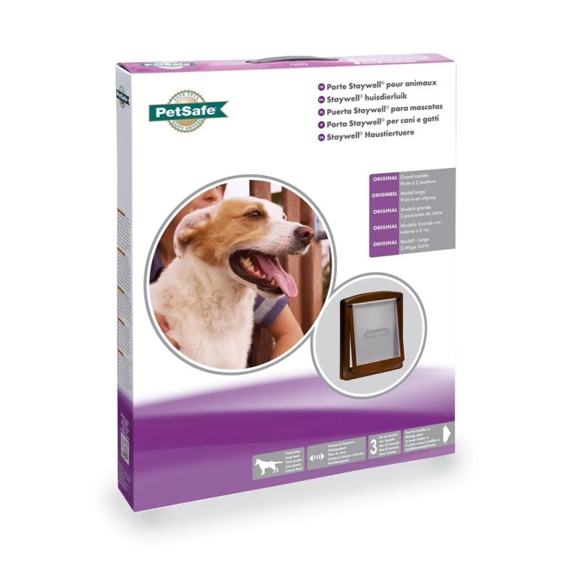 Die Hundetüre »Staywell« Haustierklappe (braun) hat eine Gesamtgröße von 456mm x 386mm und einen Ausschneidebereich 370mm x 314mm. Für eine maximale Schulterbreite von 290 mm und große Hunde bis 45kg.