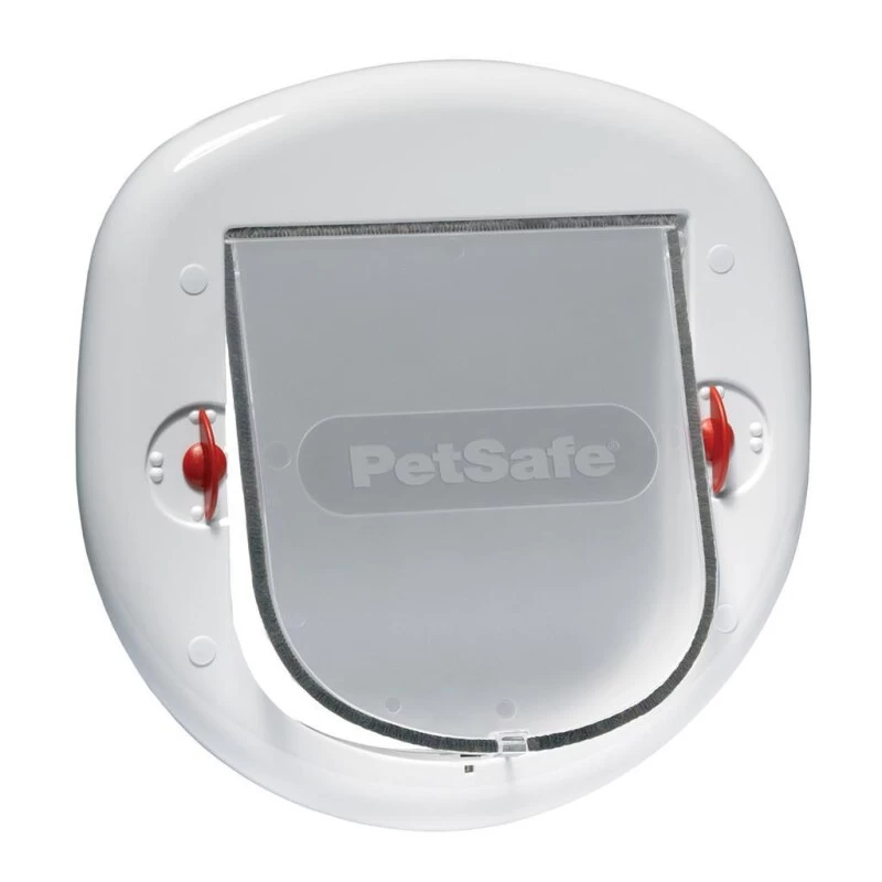 Die Katzenklappe »Staywell« Haustiertür mit einem 263mm Durchmesser ist weiß. Dies ist die größte Haustiertür, die sich in eine Glasumgebung integrieren lässt. Aufgrund des sehr schmalen Profils des Außenrahmens lässt sich diese Klappe sogar in Schiebe-, Glas- und Balkontüren einbauen. Sie eignet sich auch für herkömmliche Türen und Materialien und verfügt über 4 Schließfunktionen. Erhältlich in den Farben Metallisch/transparent und Weiß, geeignet für Katzen und kleine Hunde mit einem Gewicht von bis zu 10kg. Gesamtgröße: 292mm x 292mm, Ausschneidebereich: 263mm Kreisdurchmesser. Für eine maximale Schulterbreite von 180mm und Tiere bis 10kg.
