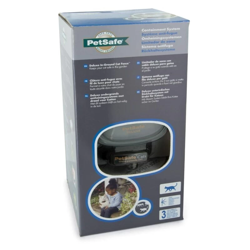 Der unterirdirsche Katzenzaun »Pet Safe« „In-Ground Cat Fence“ ist ein premium Rückhaltesystem für Katzen, um diese kontrolliert im Garten spielen zu lassen. Das System sorgt für ein sicheres und zuverlässiges Zurückhalten der Katze(n), unter Berücksichtigung des Temperamentes des jeweiligen Tieres. Der elektrische Katzenzaun ist für Katzen ab 2,7kg geeignet und ermöglicht mit dem mitgelieferten 152m Kabel eine Abgrenzung von 1.300m². Diese kann nach Bedarf erweitert werden.