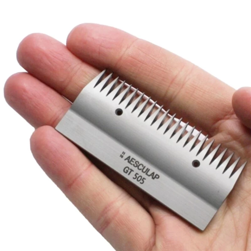 Der Scherkamm »Aesculap GT 505« (obere Schneidplatte 23 Zähne) ist geeignet für Hunde und Ziegen
