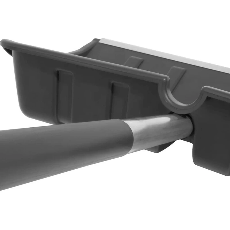 Die Stoßkante besteht aus Aluminium und bietet dadurch eine hohe Stabilität gegen Eis und Schnee. Die Schneeschippe hat eine Gesamtlänge von 150cm. Die Schaufel ist ca. 48cm breit um zügig und mühelos Schnee schieben zu können.