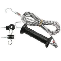 Das Torgriff Set »Kit« Torgriff inkl. Elastikseil (4,90m) mit stromführendem Elastikseil. Das Set für Torgriffe am Weidezaun bestehend aus: 4,90m – bis auf 9,50m ausziehbarem Elastikseit, Torgriff, Torgriffisolator und Ringisolator. Mit dem Torgriffset lässt sich sehr einfach ein größeres Weidetor auf Weide, Paddock etc realisieren durch das auch ein Traktor leicht durchpasst.
