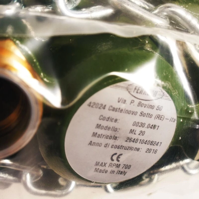 Zapfwellenpumpe »ML 20 Kit« Wasserpumpe von Ferroni aus Italien. Die „kleinere“ der Ferroni Pumpen kann je nach Modus 70 oder 180 l/min Pumpleistung liefern. Die ML20 Pumpe mit Zapfwellenantrieb ist aus robustem 10,5 kg Gusseisen und lässt sich einfach am Wellenanschluss (1 3/8″) vom Traktor oder Schlepper installieren. Ein Anschluss am Grubber ist mit der ML20 mit einem Kupplungsflansch auch möglich. Die Ferroni ML20 Pumpe mit Wellenanschluss hat zur Sicherheit eine Fangkette damit sie nicht von der Welle rutschen kann. Ihr maximaler Druck liegt bei 25 bar. Mit der Zapfwellenpumpe können Sie hochdruckreinigen und waschen (auch mit Seifen), jede nicht beizende Flüssigkeit umfüllen, bewässern und mit Stangen mit 20 oder mehr Düsen auch düngen bzw. Herbizide ausbringen. Die Zapfwellenpumpe hat eine Leistung von 4 KW/5,5 PS und dreht mit maximal 700 U/min. An Saugseite sind die Anschlüsse 1″ IG / 30 mm und an der Druckseite sind diese 3/4″ IG / 19mm. Die maximale Ansaughöhe der Ferroni ML20 Zapfwellenpumpe liegt bei 6m. Die Wasserpumpe Ferroni »ML 20 Kit« ist inklusive Schellen, Fangkette, 3m Saugschlauch, 7m Druckschlauch, Saugkorb aus Kunststoff und Messing-Spritzdüse mit Schlauchtülle.